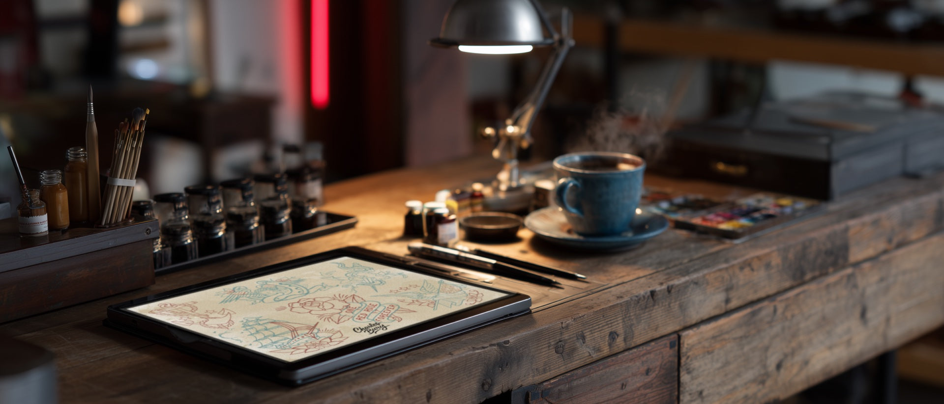 Premium Procreate brushes and digital flash assets designed for professional tattoo artists. Elevate your digital workflow with authentic traditional textures.